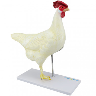 Modelo da anatomia da galinha dividido em 6 partes, possui dimensões naturais de um animal adulto; confeccionado em diversos materiais (resina plástica, PVC, materiais naturais), pintura feita totalmente a mão e com grande riqueza de detalhes anatômicos;