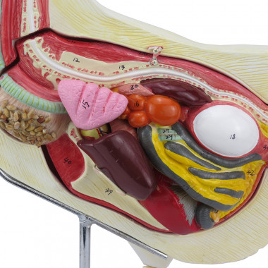 O modelo da anatomia da galinha SD-9300 possui órgãos interno que se dividem em: