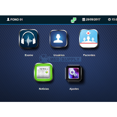 Entradas Auxiliar, USB (MP3),Headset Operador ,Microfone do Paciente e 2 Peras de resposta