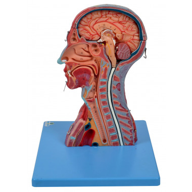 Este modelo anatômico é confeccionado em PVC e representa de forma detalhada a anatomia muscular da cabeça, pescoço e parte do tronco, mostrando ainda, nervos, osso e parte vascular;