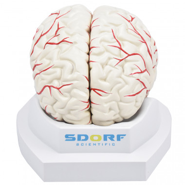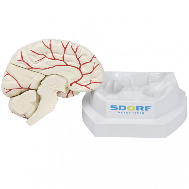 Com o modelo anatômico do cérebro arterioso em 8 partes SD-5040/B é composto por cérebro, artérias, cerebelo, bulbo olfatório e tronco encefálico e é possível identificar as seguintes estruturas entre outras