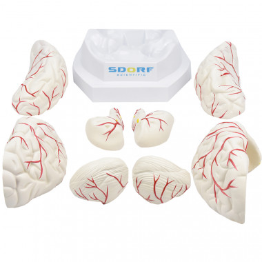 Modelo anatômico de cérebro em 8 partes e com artérias, confeccionado em resina plástica, este modelo anatômico de cérebro em tamanho natural dividido em 8 partes;