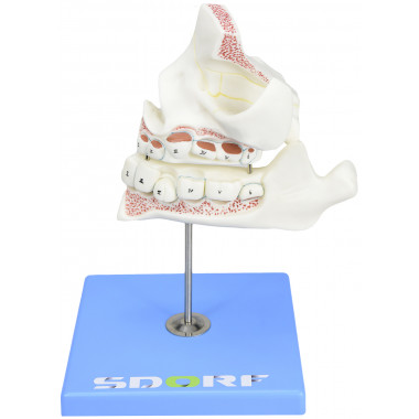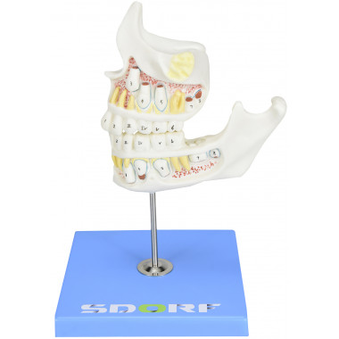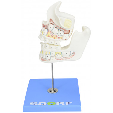 Modelo anatômico de desenvolvimento da dentição em 4 diferentes estágios, confeccionados em PVC especial, com pinturas feita a mão, este modelo anatômico possui grande riqueza de detalhes;