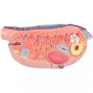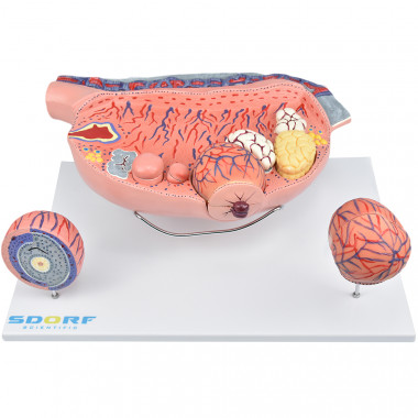 Modelo anatômico de ovário ampliado com desenvolvimento folicular no ovário em 13 partes, confeccionado em resina plástica com pintura feita à mão e cores realísticas.
