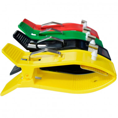 Eletrodo em forma de pinça com conexão universal utilizado em membros para exames de cardiologia. O Eletrodo Membros colorido tipo Cardioclip é colocado nos membros do paciente (pernas e braços) São compatíveis com eletrocardiógrafos e seus respectivos cabos botão de pressão e pino banana.