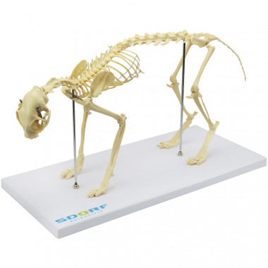 Modelo anatômico de esqueleto de gato, é confeccionado totalmente em resina plástica,