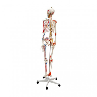 Esqueleto Humano Padrão de 170 cm com Articulações e Inserções Musculares com Haste com Suporte e Rodas