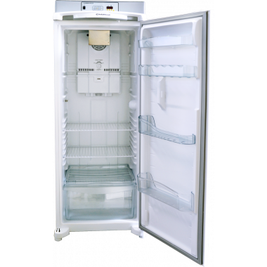 Iluminação automática ao abrir a porta. Câmara interna revestida com polímero, pré-moldado que evita a corrosão. Gabinete externo em chapa de aço carbono SAE 1020 com tratamento anticorrosivo e acabamento (pintura) em epóxi liso.