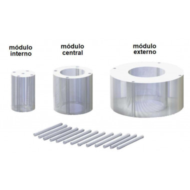 O FANTOMA CT-DOSE é um simulador de cabeça, abdômen e abdômen pediátrico elaborado em PMMA. O profissional responsável pela avaliação do equipamento de Tomografia Computadorizada deverá posicionar o simulador na entrada do Gantry do equipamento de CT e obter os valores de doses em 5 posicionamentos específicos ao longo do eixo Z, utilizando um instrumento de medição de dose (não incluso no simulador), possibilitando o cálculo do parâmetro CTDIvol (Indice de Dose em CT) para que os níveis de dose atendam aos requisitos normativos, conforme o Anexo II da IN 93/2021, além do produto dose-comprimento (DLP).
