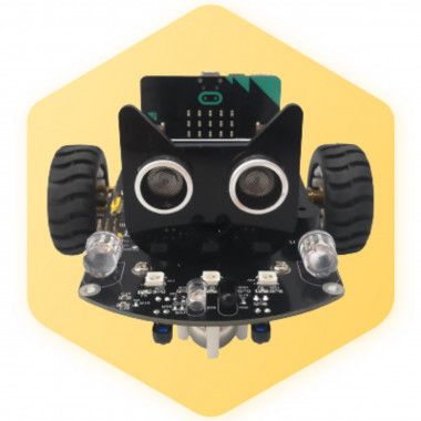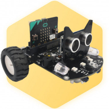 Carrinho inteligente de fácil montagem, com sistema embarcado multifuncional programável com diversos LEDs, rastreamento de linha, som e placa de expansão para diferentes aplicações em projetos educacionais.