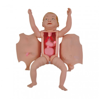 Manequim bebê bissexual com órgãos internos é confeccionado em PVC e resina siliconada e oferecendo um alto grau de detalhes anatômicos e flexibilidade;