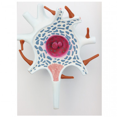 Modelo anatômico de neurônio em 2 partes, ampliado em aproximadamente 25 mil vezes, confeccionado em PVC e resina plástica, com pintura feita a mão e com cores realísticas;
