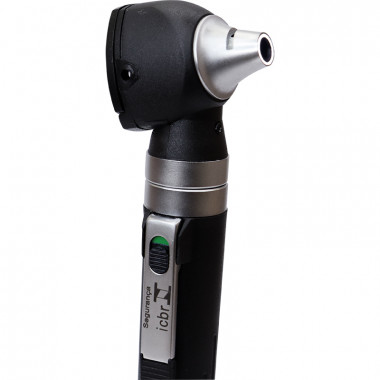 ● Porta de insuflação para teste pneumático de mobilidade timpânica.
