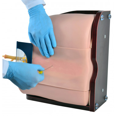 Simulador para treino de punção lombar em adulto, Confeccionado em PVC, resina plástica emborrachada siliconada e material gelatinoso, O modelo SD-4047 representa a coluna lombar de um adulto