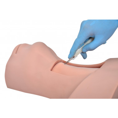 Este simulador possibilita que o procedimento seja repetido por várias vezes; A incisão pode ser feita em qualquer direção e sentido; A pele e a traqueia podem ser facilmente substituídas.