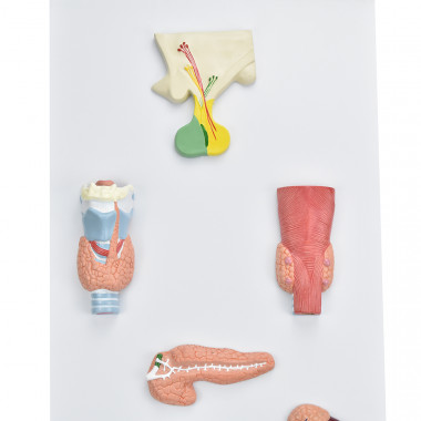 Modelo anatômico do sistema endócrino em prancha, confeccionado em PVC especial, e com pintura feita a mão e cores realísticas;